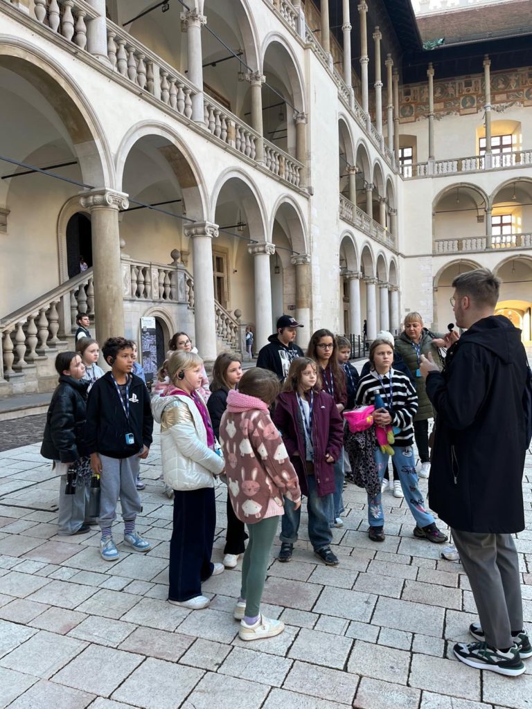Uczniowie poznali dzieje Wzgórza Wawelskiego , legendy o smoku wawelskim i królu Kraku, a także ciekawostki dotyczące królewskiego zamku. Dzięki opowieściom przewodnika mogli przenieść się w czasy dawnych władców Polski 🇵🇱 i zobaczyć miejsca, gdzie toczyła się historia naszego kraju.