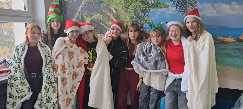 -pobytu w Komorze Ważyn – odpoczynku, gry w piłkę i koszykówkę 212 metrów pod ziemią oraz malowania plakatów świątecznych