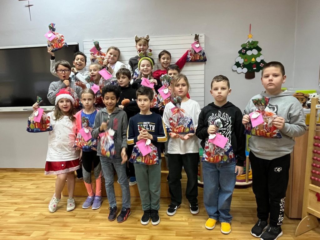 -wizyty w kaplicy św. Kingi, nauki wierszyka oraz wesołego spotkania ze św. Mikołajem, który – oprócz opowieści o biskupie Mikołaju z Miry – wręczył każdemu upominek
