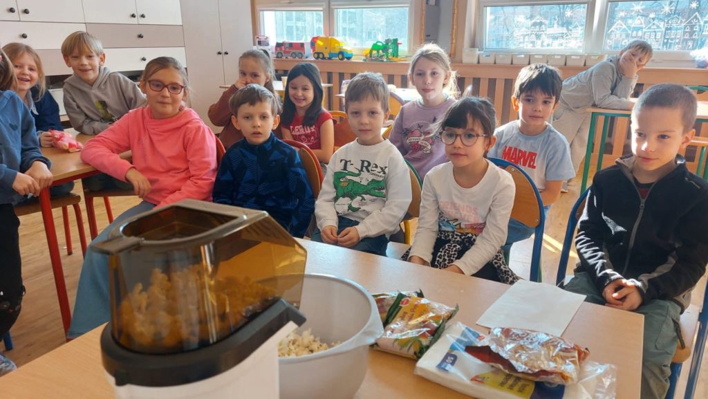Na zakończenie zajęć spotkanie z Maszą i Niedźwiedźem – obejrzenie filmiku „Uroda ma wielką moc”